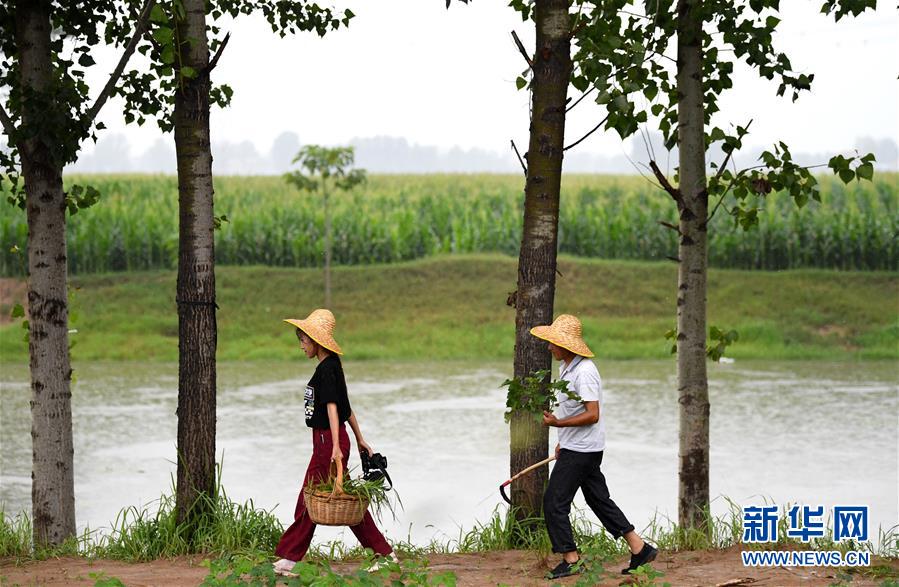 8月5日,王曉楠(左)與父親在河邊拍攝后準(zhǔn)備回家。新華社記者郝源攝
