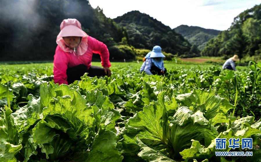 陜西寶雞市太白縣咀頭鎮(zhèn)塘口村的村民在菜地里勞作(7月4日攝)。近年來,地處秦嶺腹地的陜西太白縣利用海拔高、晝夜溫差大等條件發(fā)展高山反季節(jié)無公害蔬菜種植。目前全縣85%的群眾從事蔬菜生產(chǎn),種植的反季節(jié)高山蔬菜涵蓋28大類390余種,暢銷全國。新華社記者劉瀟攝。