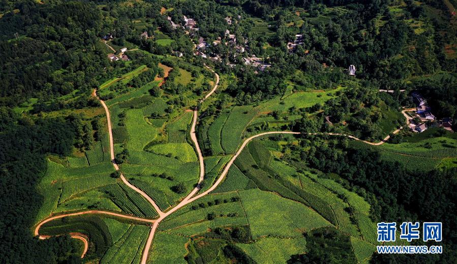 陜西省洛南縣石門鎮(zhèn)花廟村的連戶路(7月27日攝,無人機照片)。新華社記者劉瀟攝。