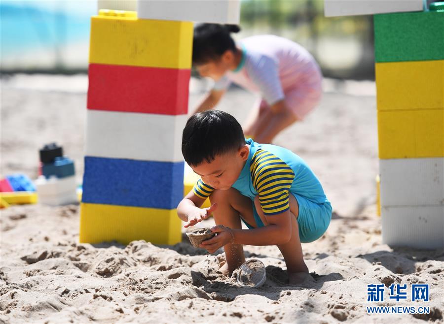8月9日,小朋友在南宮五洲植物樂(lè)園戶(hù)外戲水區(qū)旁的沙灘上玩沙子。近期,在做好新冠肺炎疫情防控的前提下,位于北京市豐臺(tái)區(qū)的南宮五洲植物樂(lè)園戶(hù)外戲水區(qū)對(duì)外開(kāi)放。市民在戲水的同時(shí)還可以在沙灘上畫(huà)沙畫(huà)、在新游樂(lè)項(xiàng)目“叢林網(wǎng)繩”里穿梭跳躍,豐富暑期生活。新華社記者任超攝。