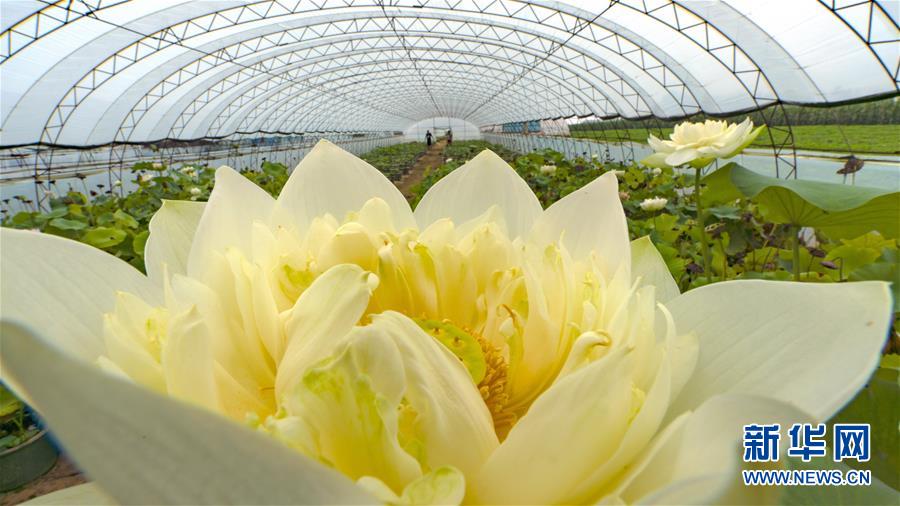 8月12日,河北省灤州市茨榆坨鎮(zhèn)草塘坨村花農在大棚內打理種植的蓮花。新華社記者 牟宇 攝