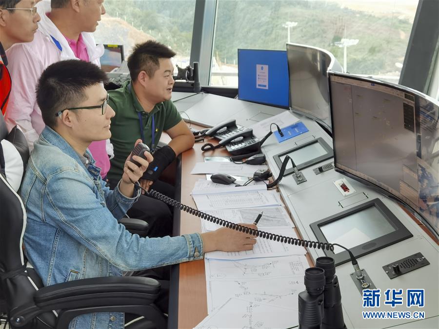 8月13日,參加校飛的地面工作人員在仙女山機(jī)場(chǎng)的塔臺(tái)工作區(qū)內(nèi)工作。當(dāng)日,位于重慶武隆區(qū)的仙女山機(jī)場(chǎng)飛行校驗(yàn)工作正式開始。據(jù)介紹,重慶仙女山機(jī)場(chǎng)校飛時(shí)間大約需3至5天。重慶仙女山機(jī)場(chǎng)于2018年4月全面開工,機(jī)場(chǎng)跑道長(zhǎng)2800米、寬45米,航站樓總面積6000平方米,投用后可滿足每年60萬(wàn)人次的旅客吞吐量。新華社記者劉潺攝