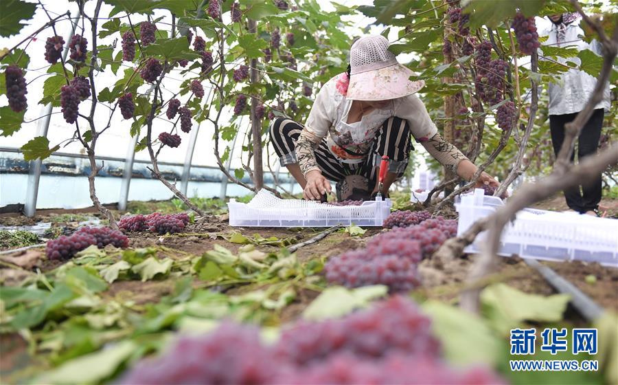 8月13日,在吉林省磐石市煙筒山鎮(zhèn)民主村,村民在葡萄大棚內(nèi)采摘葡萄。時下,吉林省磐石市煙筒山鎮(zhèn)棚膜葡萄園區(qū)內(nèi)的大棚葡萄進(jìn)入采摘季,農(nóng)民喜獲豐收。近年來,當(dāng)?shù)赝ㄟ^“共創(chuàng)”與“扶持”相結(jié)合的模式大力發(fā)展特色農(nóng)業(yè),建設(shè)葡萄種植大棚300余棟,以此帶動村集體經(jīng)濟(jì)發(fā)展,助力農(nóng)民增收致富。新華社記者許暢攝