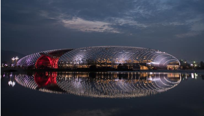 夜幕下的國家會展中心 “四葉草”燈光璀璨