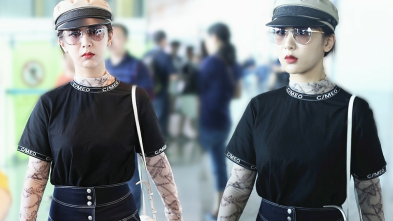 關(guān)曉彤淡定抱臂行走,脖子上掛U型枕毫無(wú)偶像包袱。