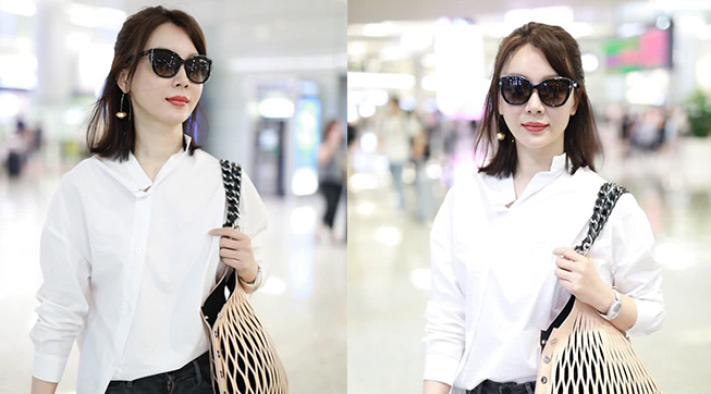 陳數(shù)穿白襯衫知性淺笑甜美迷人 架黑超拎漁網(wǎng)紋展職場(chǎng)女性魅力
