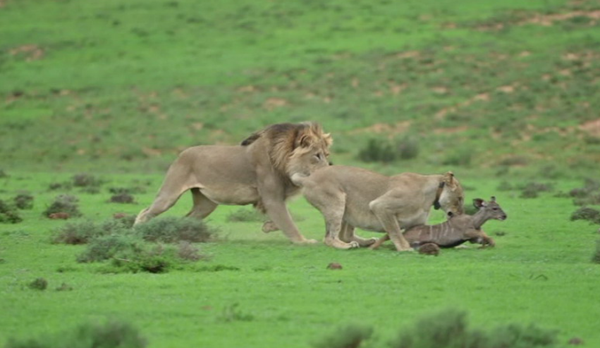 肯尼亞獅子捉了只烏龜當(dāng)“零食” 啃不到肉肉好生氣!