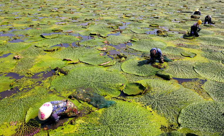 罕見的壯觀場(chǎng)面!萬余畝芡實(shí)迎來收獲季