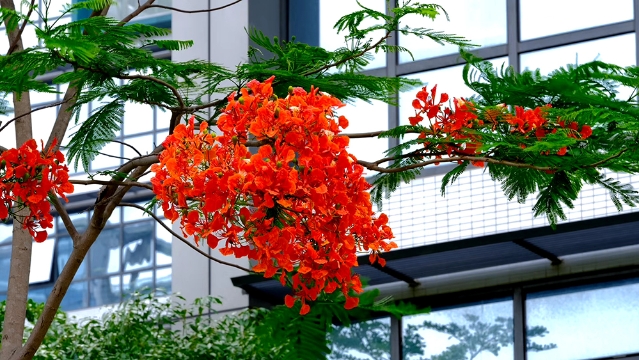 鳳凰花開:葉如飛凰之羽,花若丹鳳之冠