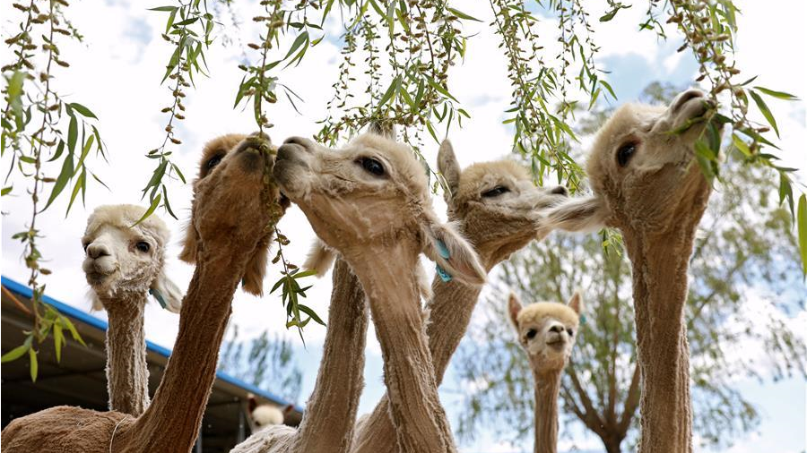 隨著天氣變暖,遼寧省臺安縣一家大型羊駝養(yǎng)殖基地里600余只羊駝集體脫掉了“毛衣”。羊駝剪下的羊駝絨經過加工可以制成各種產品。