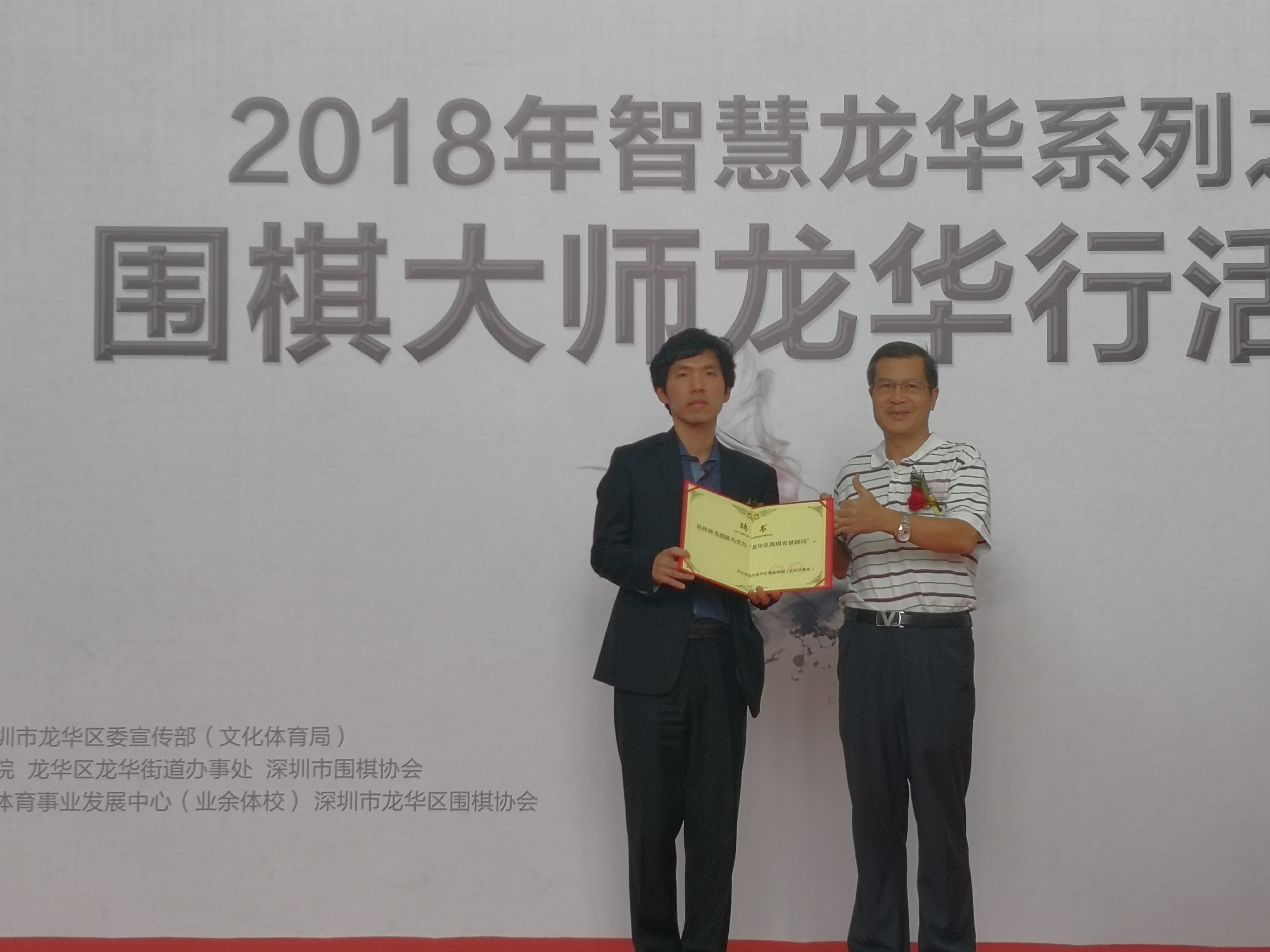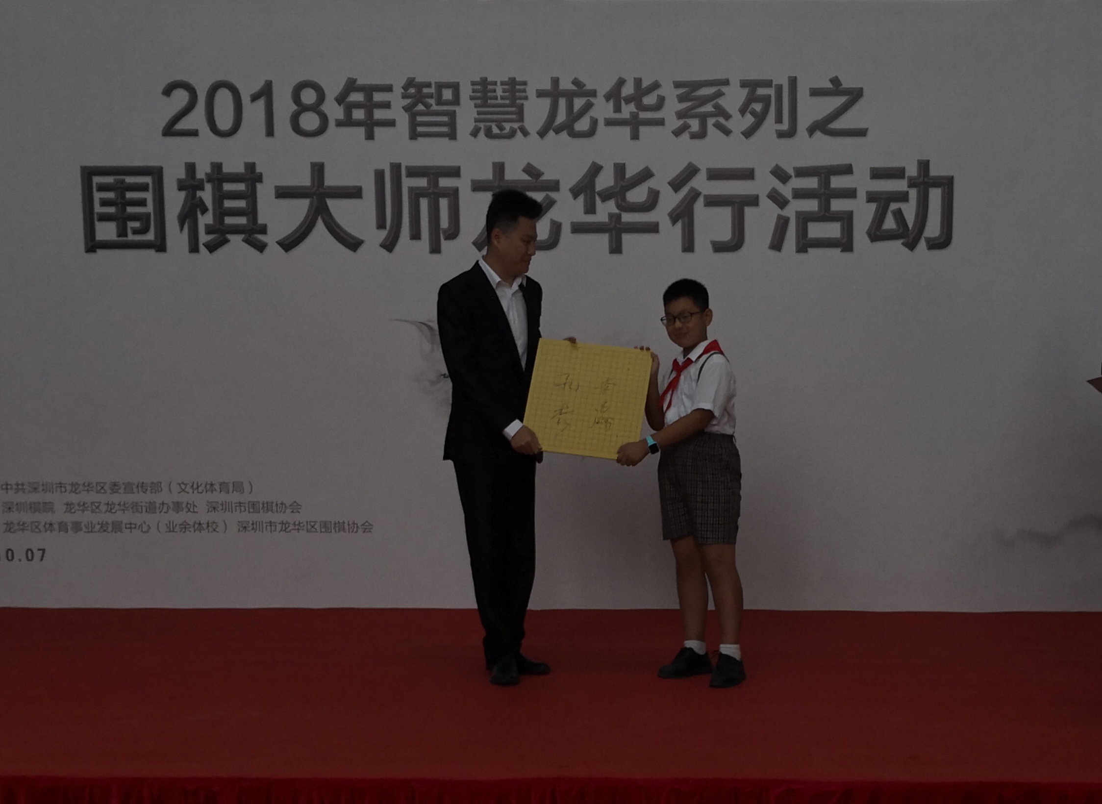 開幕式上,龍華區(qū)委副書記苗寧禮,龍華區(qū)委常委、宣傳部長(zhǎng)黃啟鍵及區(qū)文化體育局相關(guān)負(fù)責(zé)人等在百忙中前來(lái)為“智慧龍華”捧場(chǎng)加油。活動(dòng)在輕松熱鬧的歌舞中拉開帷幕,文化體育局負(fù)責(zé)人在致辭中對(duì)諸位圍棋大師的到來(lái)表示熱烈的歡迎,對(duì)活動(dòng)擴(kuò)大中華圍棋文化的傳播,推動(dòng)龍華區(qū)圍棋的發(fā)展給予了充分的肯定。隨后,黃啟健常委代表龍華區(qū)聘請(qǐng)李昌鎬大師擔(dān)任龍華區(qū)圍棋發(fā)展的名譽(yù)顧問并頒發(fā)了證書,李昌鎬則回贈(zèng)了簽名棋盤。緊接著,孔杰老師也給參加活動(dòng)的小棋手贈(zèng)予了簽名棋盤。在廣東圍棋總冠軍佟云老師簡(jiǎn)要介紹李昌鎬、孔杰的精采圍棋經(jīng)歷之后,活動(dòng)主持人還現(xiàn)場(chǎng)采訪了李昌鎬、孔杰,就兩人圍棋從業(yè)過程中的難記經(jīng)歷、精采賽事以及對(duì)人工智能圍的展望等進(jìn)行了提問,兩位大師的回答坦率、誠(chéng)懇,贏得了現(xiàn)場(chǎng)觀眾的陣陣掌聲?;顒?dòng)的高潮是李昌鎬、孔杰、車澤武、張亞博四位老師與龍華區(qū)的圍棋愛好者進(jìn)行多面打的活動(dòng),梁偉棠九段和徐瑩老師還進(jìn)行掛盤講解。
