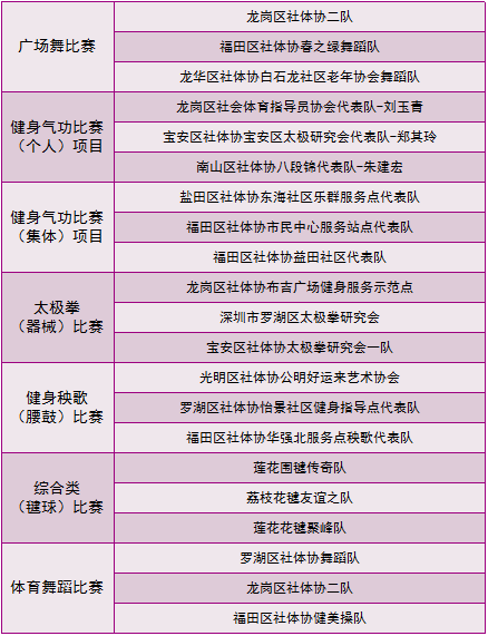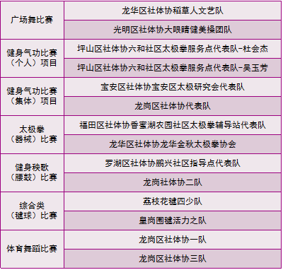 深圳市2018年第二屆社會體育指導員技能交流展示大賽各單項比賽一等獎獲獎名單