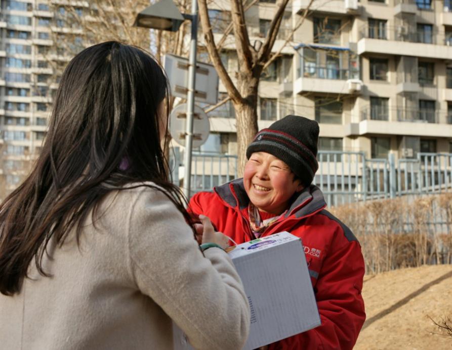 47歲的“快遞大姐”郭麗杰和同為快遞員的丈夫管振宇已經(jīng)是京東物流的“老員工”了,為了讓外地的同事回家過年,今年已經(jīng)是他們連續(xù)第7年選擇在春節(jié)期間堅守崗位。大年三十早上5點半,郭麗杰就已經(jīng)到達(dá)站點,為她所負(fù)責(zé)的3個小區(qū)的17棟樓的居民送去年貨,一直忙到晚上8點。雖然辛苦,但郭麗杰的臉上始終洋溢著幸福的笑容,來自客戶的夸贊和對待親人般的熱情,讓郭麗杰很有成就感,“我是把這個工作完成了,但我也成全了別人”?!岸道镉绣X心不慌”,夫妻兩人的小日子也越過越紅火,2019年的愿望就是把兩年前新買的樓房裝修裝修。