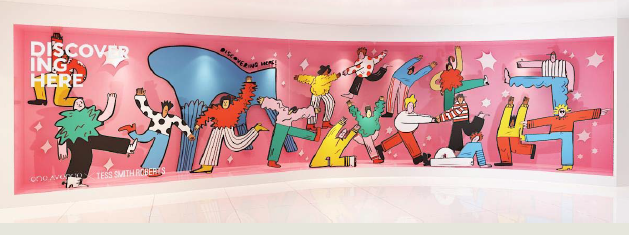 此外,4位國際插畫家聯(lián)合打造藝術(shù)櫥窗展覽《F ashion Street 》,則為卓悅中心帶來了更加色彩斑斕的視覺體驗(yàn):Tess Smith Roberts(英國)明快的色彩與童趣的風(fēng)格,充滿治愈感;Lisa Tegtmeier(德國)以抽象的幾何形人物,簡單卻引人注目;Jisu Choi(韓國)通過平面中的立體描繪,展現(xiàn)出卓悅中心奇幻豐富的體驗(yàn);Decue Wu(美國)則以“城市日記”的理念,充分展現(xiàn)出“城市T臺”的時尚氣質(zhì)。