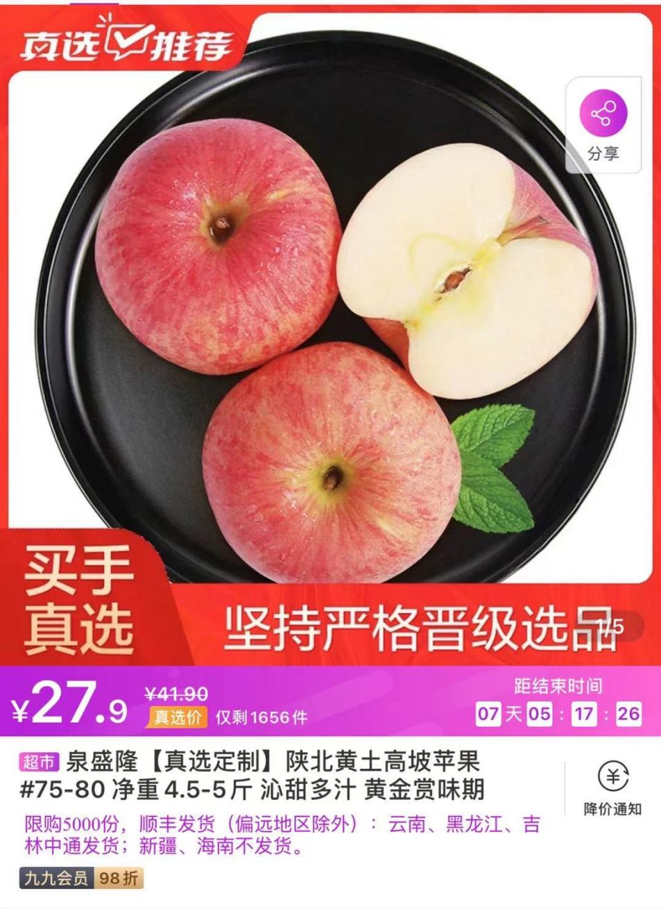 國美真選官買手為了搞清楚這個問題,到7個國內(nèi)蘋果主產(chǎn)區(qū),用測脆度和糖度的機器到產(chǎn)地挑選,那么數(shù)據(jù)顯示這個季節(jié)到底是哪個品種的蘋果最好呢?國美真選官通過測試50多款蘋果后發(fā)現(xiàn),在1月-3月,陜北黃土高坡的紅富士口味最佳。這是因為黃土高坡上溫差大,蘋果的脆度、水分和糖度的數(shù)值都很好,一般的蘋果糖度達到12,但是它的糖度可以達到15或者16。