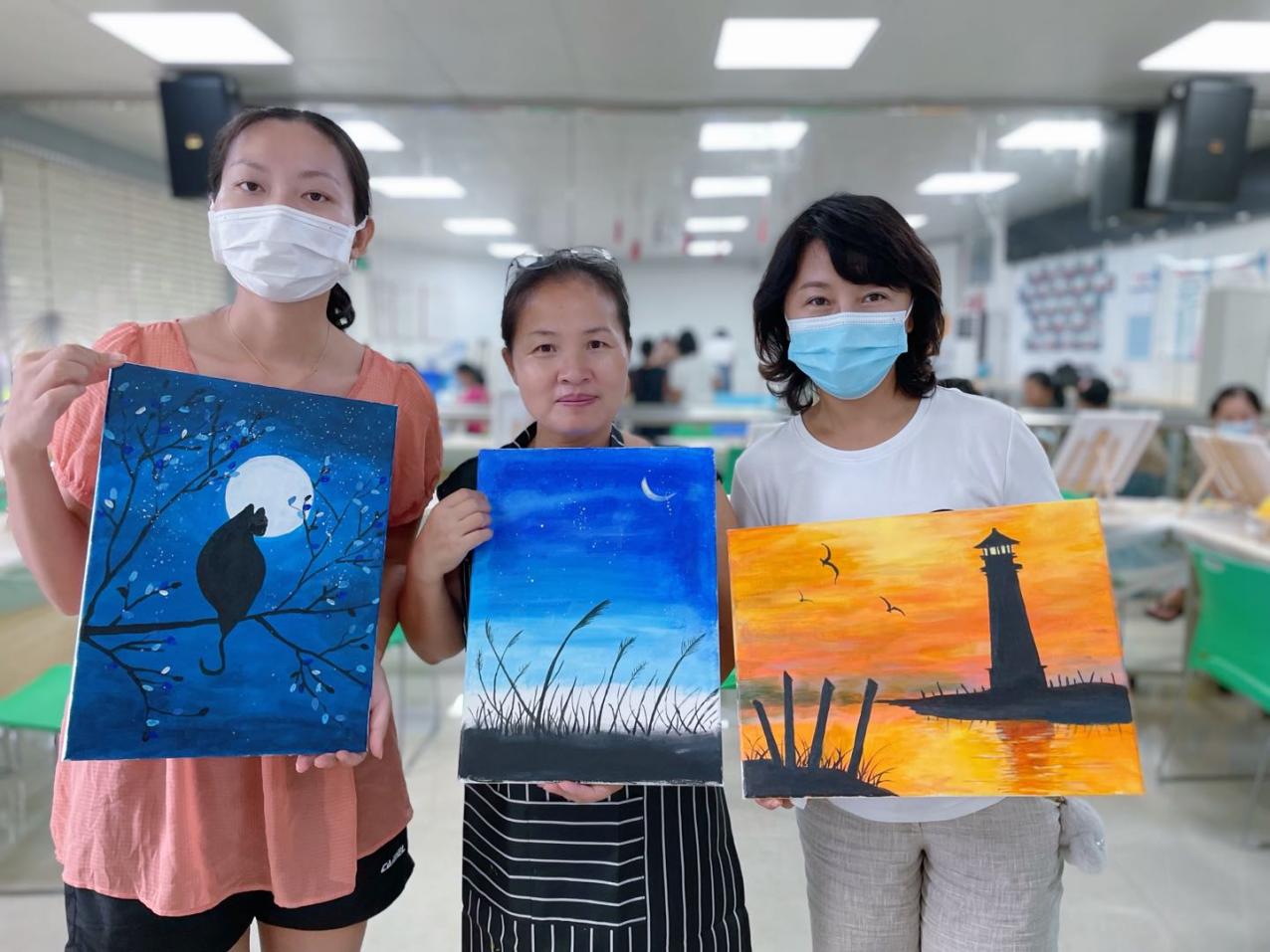 溫馨的環(huán)境,融洽的氣氛,專業(yè)的老師,友好的同伴,媽媽們度過(guò)了一個(gè)個(gè)美好的下午。盡管媽媽們都是零基礎(chǔ),但全情投入的專注,不僅釋放了壓力,更是打開(kāi)了一扇通往油畫藝術(shù)的小窗。愛(ài)自己,愛(ài)生活,才能更好地愛(ài)家人,本次油畫班持續(xù)開(kāi)展約兩個(gè)多月,媽媽們更好地享受屬于自己的油畫時(shí)間,學(xué)有所獲。