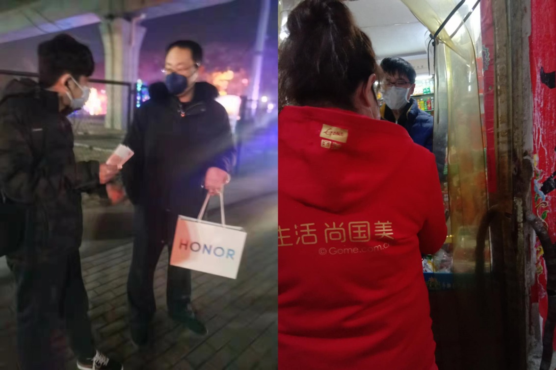 2月23日,北京國(guó)美十里河店華為手機(jī)促銷(xiāo)員王俊為家住十里河的苗女士免費(fèi)寄出了當(dāng)日購(gòu)買(mǎi)的華為手機(jī),家住六里橋的李先生收獲了自己23分鐘前下單的美的電水壺,為他送貨的國(guó)美六里橋門(mén)店美的品牌促銷(xiāo)員張曉燕。