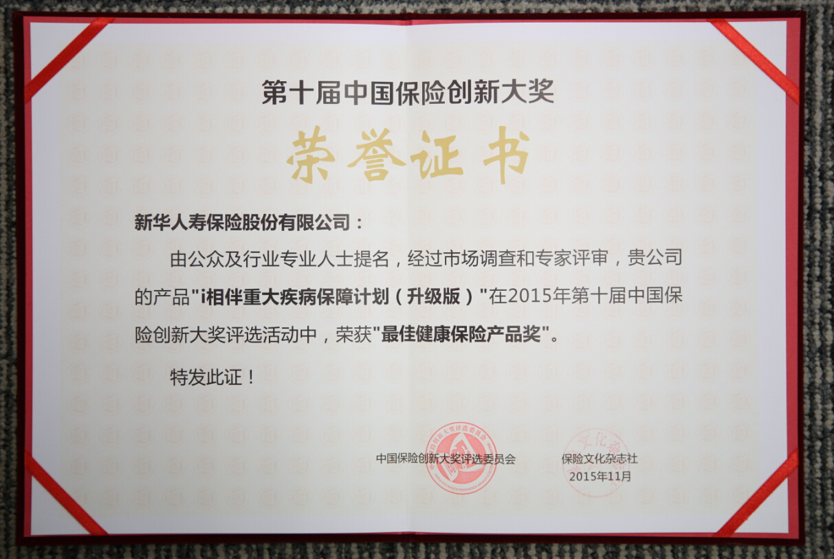 2015年最佳健康保險(xiǎn)產(chǎn)品獎
