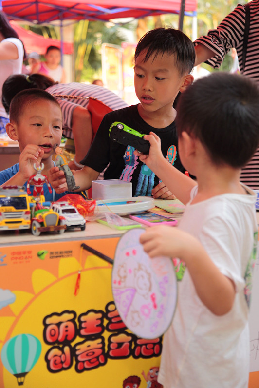 7月9日下午,一場有趣的“萌主”兒童創(chuàng)意市集在彩田村中心廣場舉行,40多名小朋友在家人的陪同下在這里鼓起勇氣挑戰(zhàn)自己。