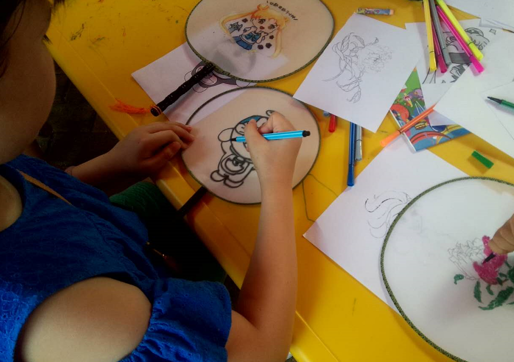 扇子彩繪吸引小朋友熱情參與