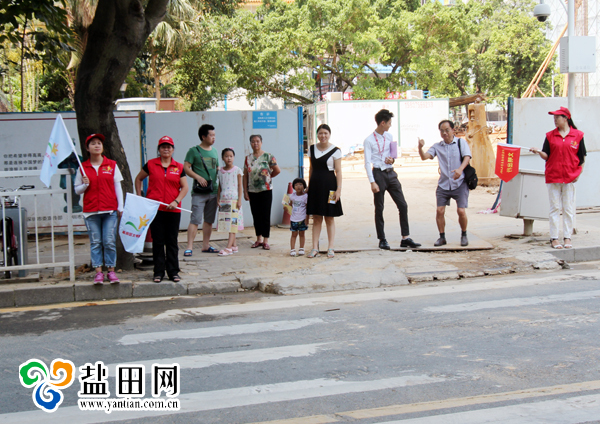 周末的深圳,一大早就艷陽高照,氣象部門早早就發(fā)出了高溫橙色預(yù)警,但高溫天氣絲毫也沒有阻擋“微友”開展“文明微行動(dòng)”活動(dòng)的決心。上午十時(shí),記者在現(xiàn)場看到,近百名身著紅馬甲的“微友”已經(jīng)在區(qū)政府,新一佳,郵局等人流量集中的十字路口開展交通文明勸導(dǎo)活動(dòng)。盡管酷暑難耐,來往路人顯得行色匆匆,但在“微友”們的交通指揮和勸導(dǎo)下,車輛主動(dòng)禮讓行人,行人自覺地遵守秩序,各個(gè)十字路口一片秩序井然。