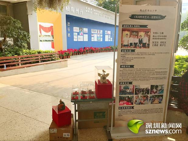 市中小學(xué)傳統(tǒng)文化類“好課程”負(fù)責(zé)人代表南山小學(xué)帶來(lái)民間傳統(tǒng)工藝——面塑的設(shè)展示區(qū)。