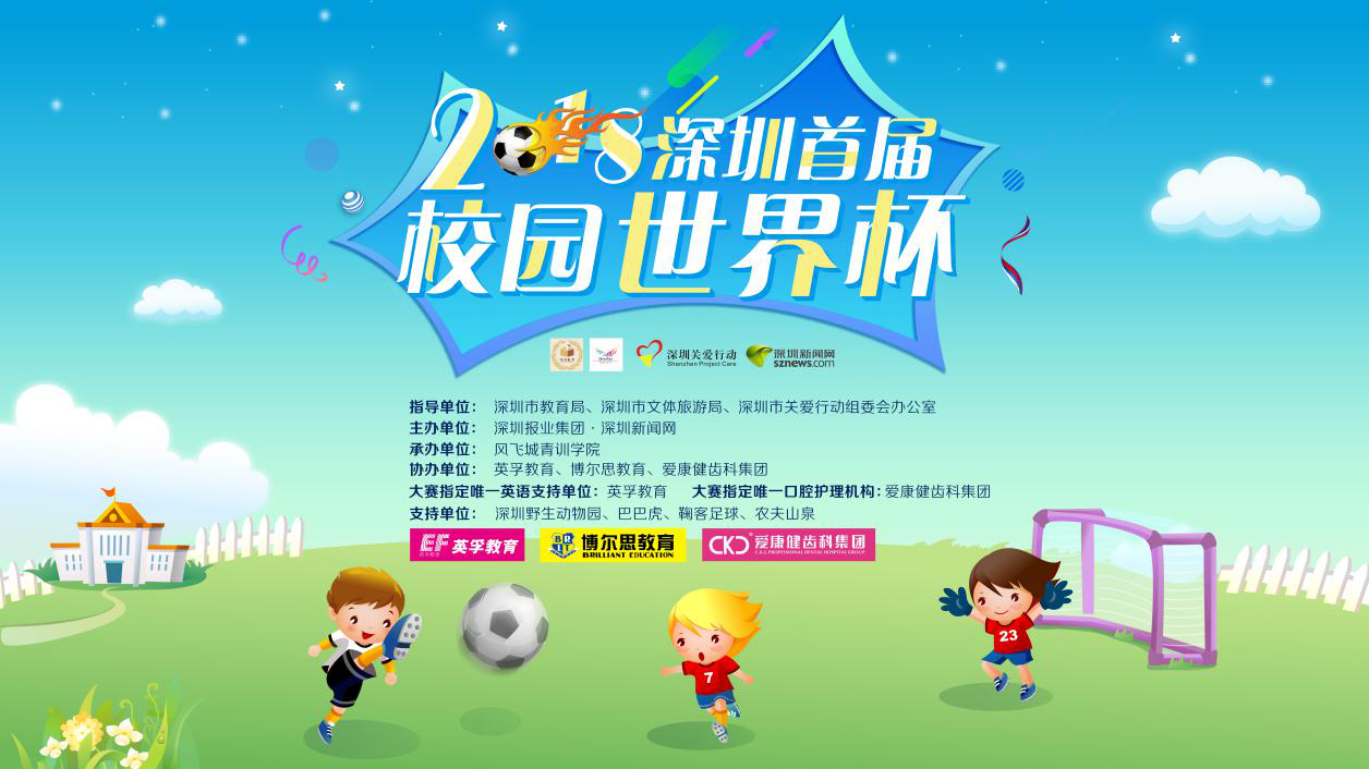 為貫徹“普及+提高”的校園足球方針,普及、傳播深圳校園足球,推動校園足球工作健康發(fā)展。由深圳市教育局、深圳市文體旅游局、深圳市關(guān)愛行動組委會辦公室指導(dǎo),深圳新聞網(wǎng)主辦,風飛城青訓(xùn)學院承辦的2018深圳首屆校園世界杯將于2018年7月10日-15日在深圳市仙桐體育公園足球場舉行。