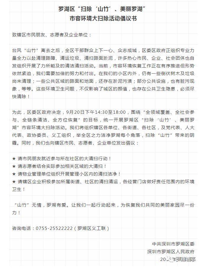 為此,區(qū)委、區(qū)政府緊急決定,于昨天下午在全區(qū)范圍內(nèi)開展“掃除‘山竹’、 美麗羅湖”大清掃活動。
