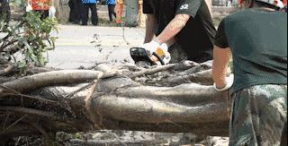 小哥哥們拿著電鋸