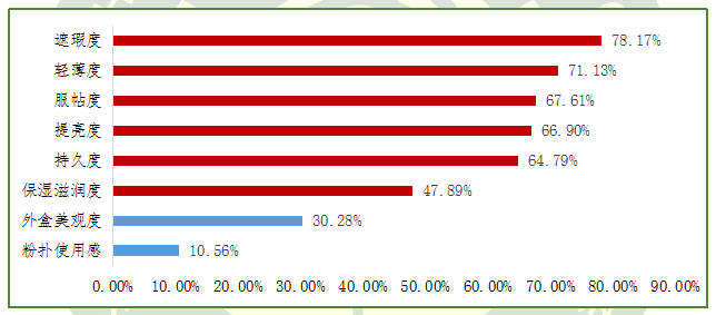 圖6.關(guān)注氣墊粉底使用性能指標的消費者人數(shù)占比