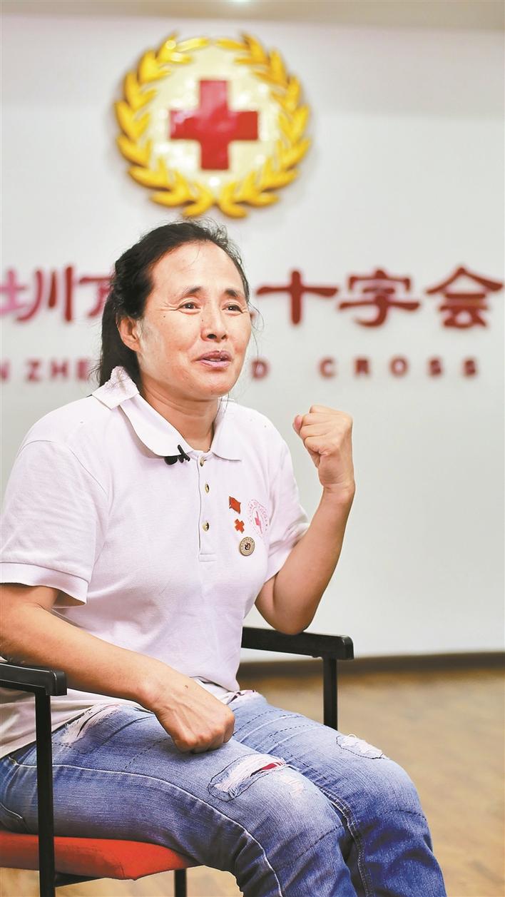 1997年,我從濟(jì)南市商河縣的農(nóng)村來到深圳,幫妹妹照看孩子。一次偶然的機(jī)會,我看到路邊一輛無償獻(xiàn)血車,車上寫著缺A、B、O型血,這讓我想起了小時候看過的小人書,白求恩大夫獻(xiàn)出300毫升鮮血挽救了八路軍傷員的生命,心想現(xiàn)在自己也有機(jī)會通過獻(xiàn)血去救助危重的病人,真的太好了。漸漸地,我成了深圳市紅十字會的“??汀?,也成了深圳市紅十字會的志愿者。至今,我志愿服務(wù)時間近6萬小時,無償獻(xiàn)血316次。