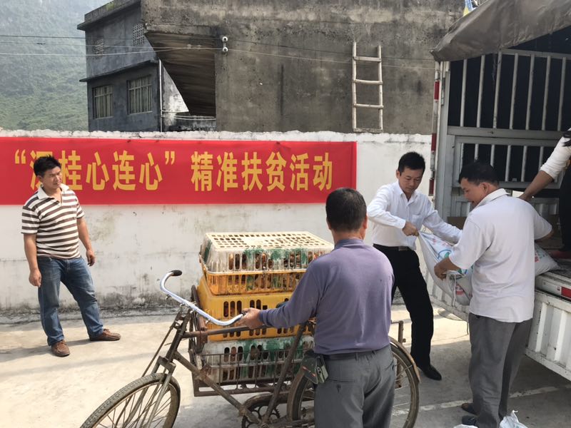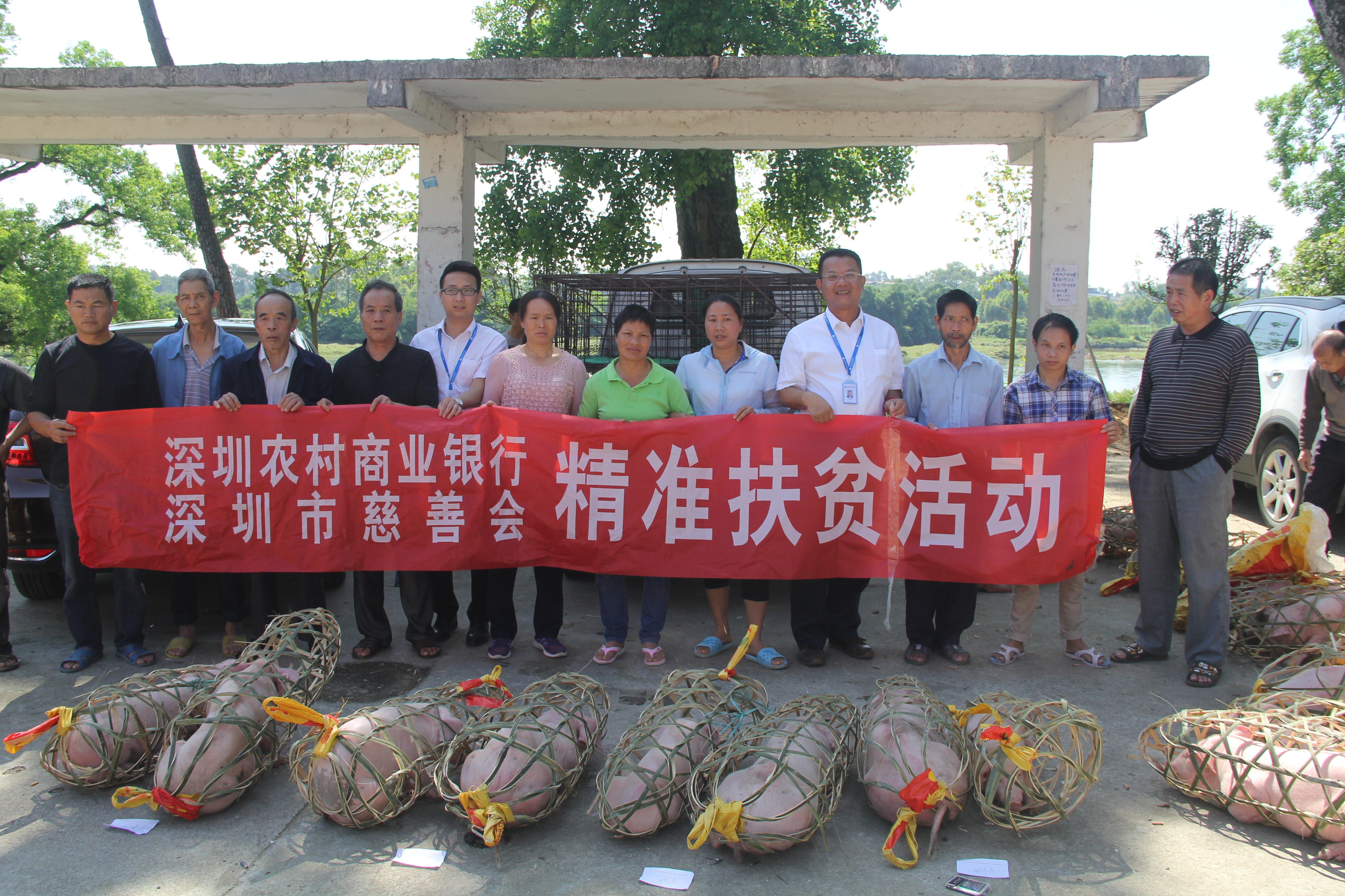 2017年,深圳農(nóng)商行的廣西6家機構(gòu)開展了“深桂心連心”精準扶貧活動,向所在地貧困戶免費發(fā)放農(nóng)業(yè)生產(chǎn)資料,通過采購等值的農(nóng)資(如雞、鴨、豬崽、農(nóng)作物種子與樹苗等)按戶發(fā)放給扶貧對象,待雞、鴨、豬崽和農(nóng)作物可出售時由廣西各機構(gòu)介紹銷售或負責回購,確保扶貧對象既能脫貧,又能提高致富能力。深桂心連心精準扶貧活動,共資助了299戶貧困戶,扶貧總投入為292879元。通過扶貧活動,帶動更多的貧困戶依靠辛勤勞動,脫貧致富。