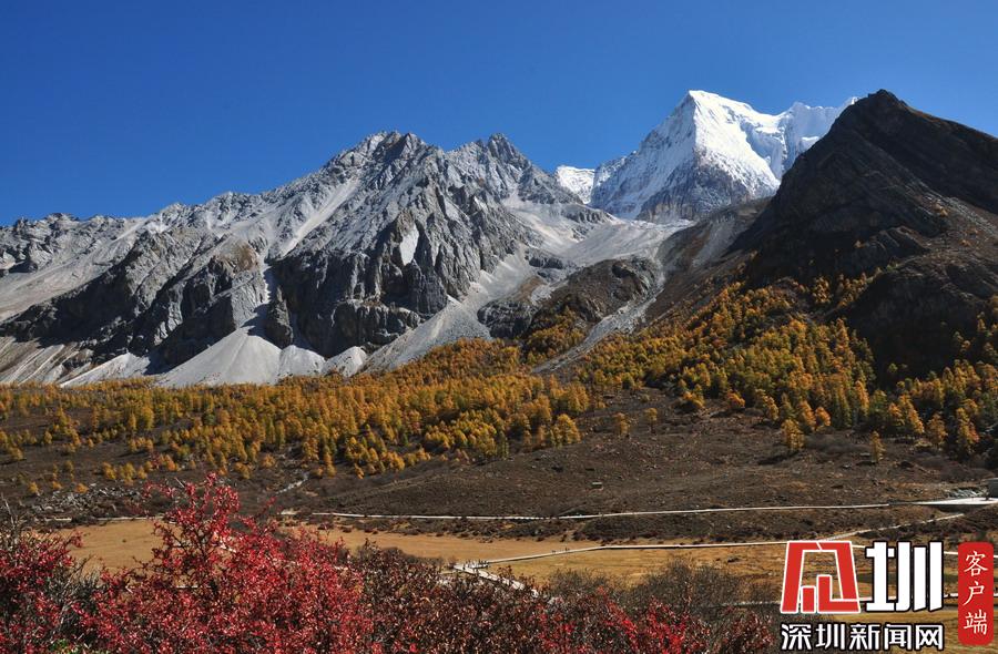深秋時(shí)節(jié),天高云淡,四川西南部稻城亞丁景區(qū)滿山的落葉松在陽(yáng)光映襯下呈現(xiàn)出金黃的色彩,加之深紅色灌木的點(diǎn)綴,又得用那句“上帝的調(diào)色板”來(lái)比喻了。李仁奇攝
