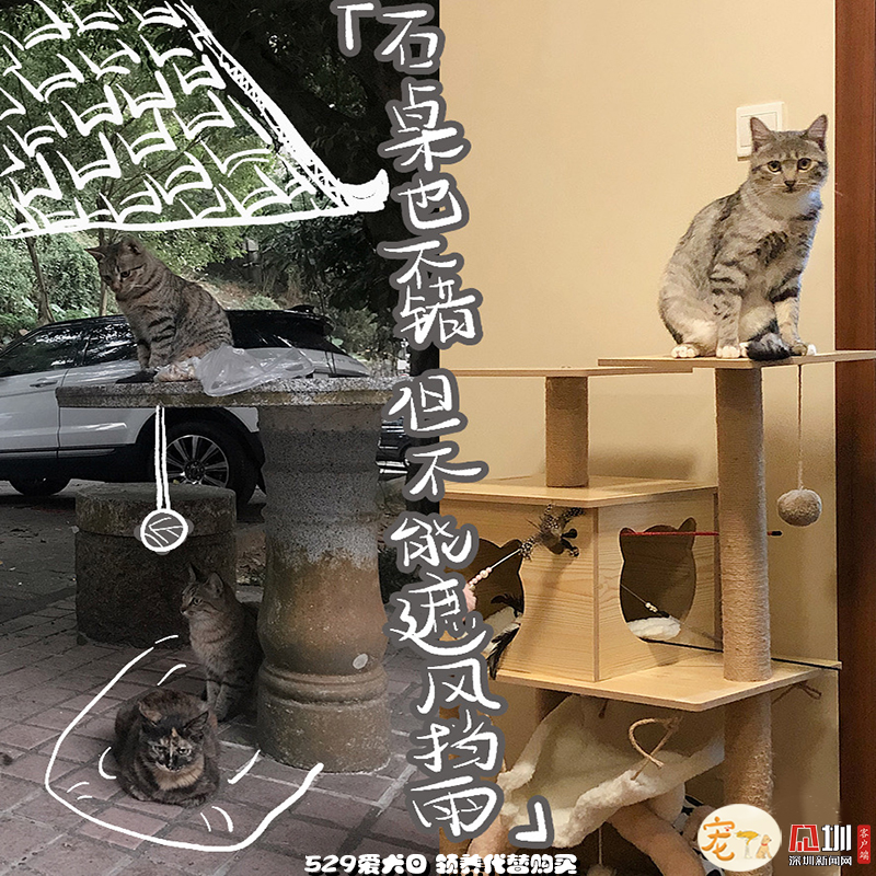 外面的世界再精彩,也比不過一個能遮風擋雨,沒有車流、毒藥威脅,三餐穩(wěn)定、四季如春的容身之處,更何況,這里還有比石桌更有趣的貓爬架和比落葉更好玩的小玩具。現(xiàn)在“高高在上”“作威作?!钡呢堖?,也是花光了一生所有運氣,才能在無法獨自生存的小時候,遇見一個愿意照顧TA一生的“兩腳獸”。