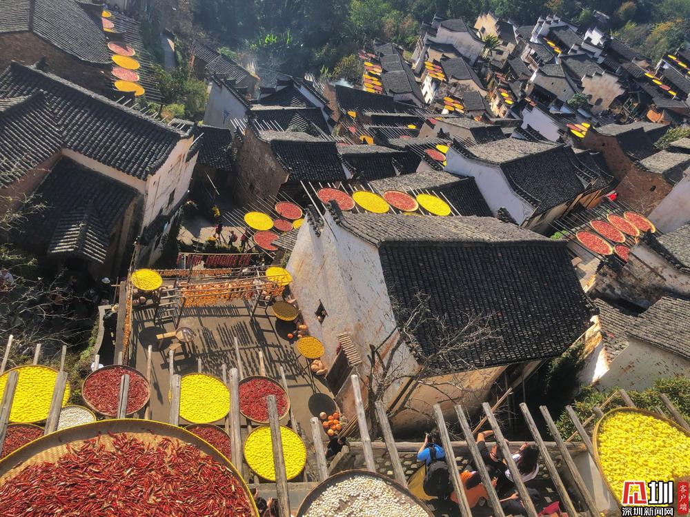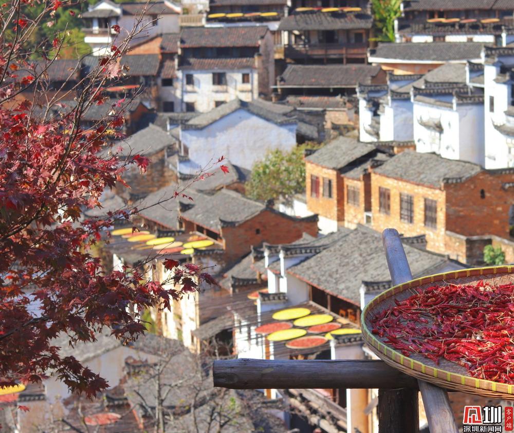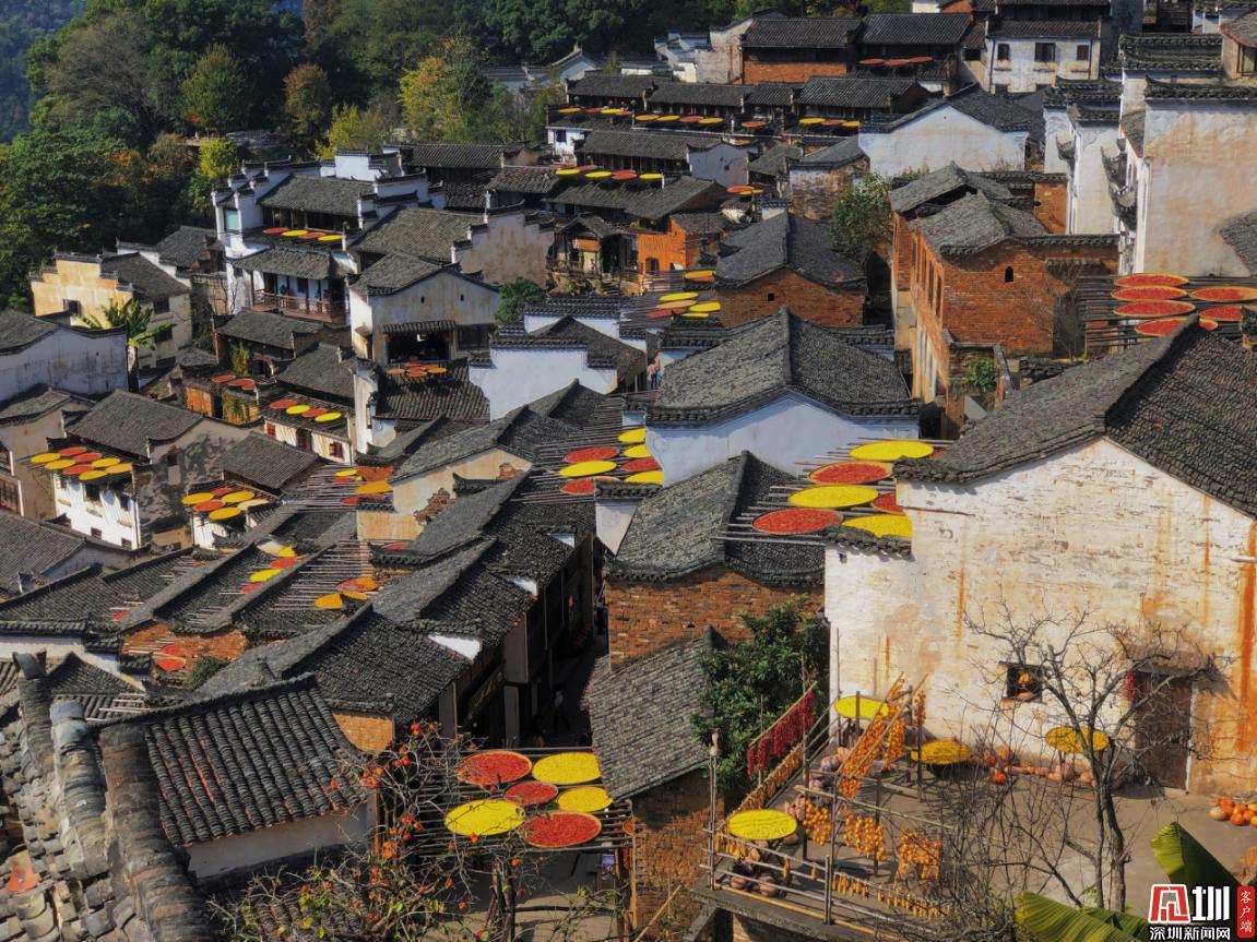 見圳客戶端·深圳新聞網(wǎng)2020年11月25日訊 江西婺源縣篁嶺村獨(dú)特的“曬秋”農(nóng)俗景觀。篁嶺村位于江西省上饒市婺源縣東北部,是著名的“曬秋”文化起源地,也是一座距今近六百年歷史的徽州古村。每當(dāng)日出山頭,數(shù)百棟徽派古民居在百米落差的坡面錯落排布,整個山間村落徽式民居土磚外墻與曬架上五彩繽紛豐收成果組合,繪就出“曬秋”農(nóng)俗特色景觀。