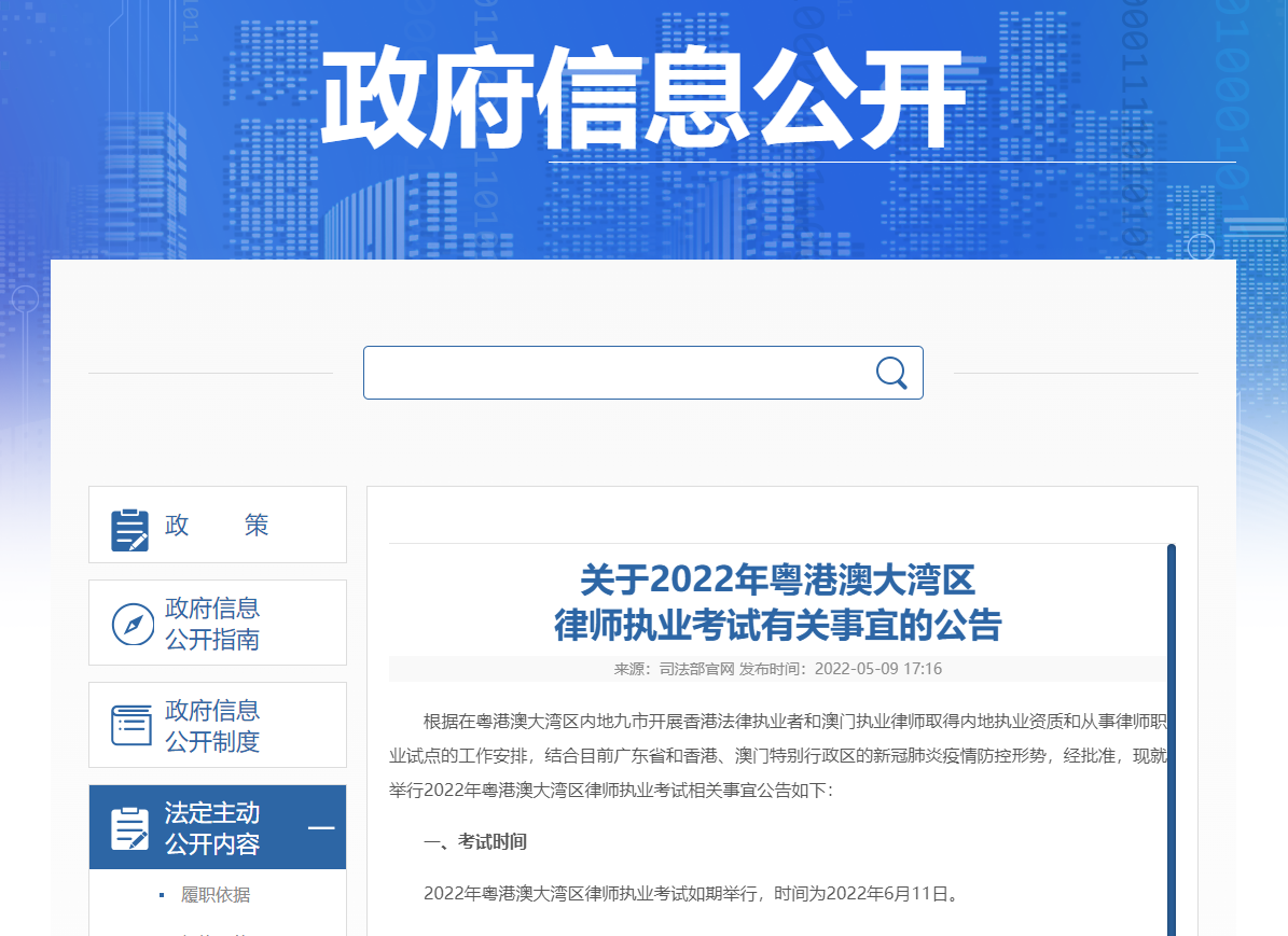 2022年粵港澳大灣區(qū)律師執(zhí)業(yè)考試內(nèi)容、成績公布及核查等事宜,按照2021年12月公布的《中華人民共和國司法部公告》(第9號(hào))執(zhí)行。