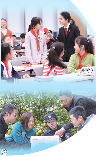 圖①:在重慶市中華路小學(xué)法治課堂上,法官與同學(xué)們互動。 尚博攝(影像中國)