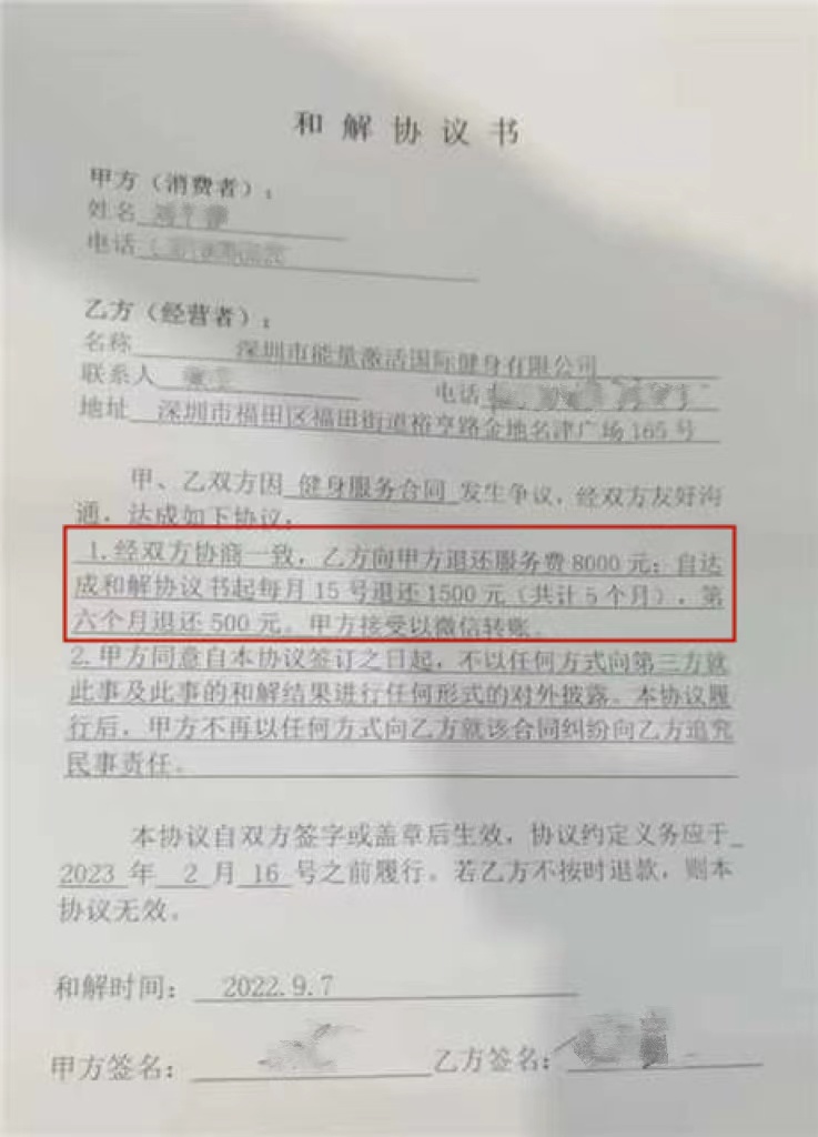 本人在該商家處購買健身會員卡服務,因健身服務合同內容與商家產生爭執(zhí),經協(xié)商,商家簽訂了退款協(xié)議,同意退還服務費8000元,分6期退還。在退還第一期費用1500元后,商家以經營困難為由拒不履行退款協(xié)議。