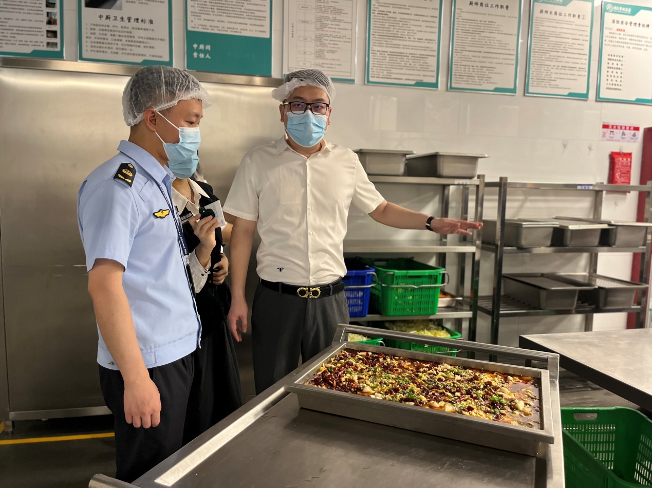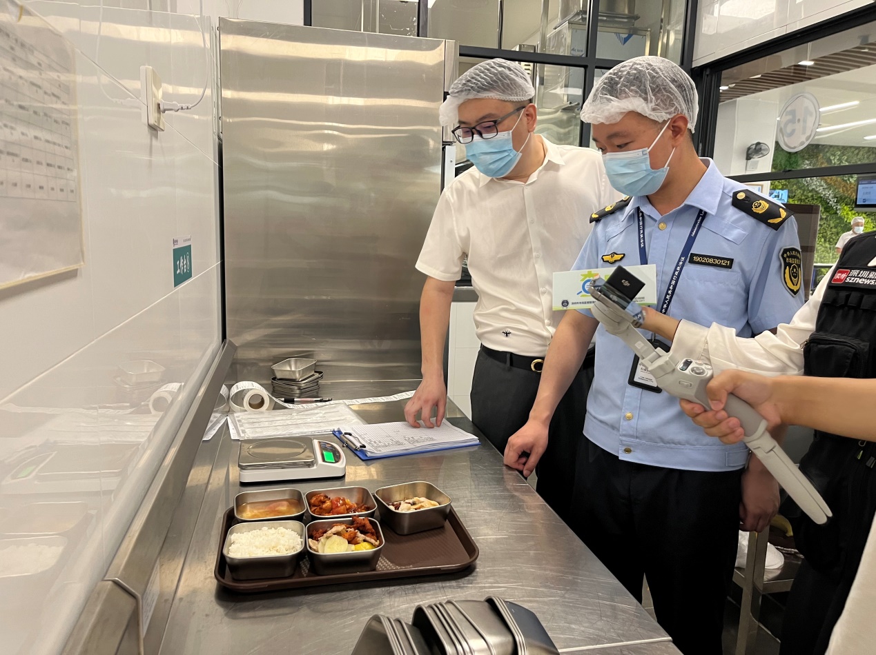 執(zhí)法人員現(xiàn)場對學(xué)校后廚進行詳細(xì)檢查,分別從采購索證索票、進貨查驗、制作加工、備餐配送、場所和設(shè)施清潔維護、餐飲具清洗消毒、從業(yè)人員健康管理,制止餐飲浪費,食品安全總監(jiān)配置履職情況,以及落實主體責(zé)任的“日管控周排查月調(diào)度”制度等方面進行詳細(xì)檢查。經(jīng)檢查,整體情況良好,但存在部分細(xì)節(jié)問題,如水產(chǎn)品刀具分類可更細(xì)致、操作臺積水需清理、面點間的食材存放需避免陽光直射等,針對檢查過程中發(fā)現(xiàn)的問題,執(zhí)法人員現(xiàn)場責(zé)令學(xué)校限期整改到位。同時,快檢工作人員對餐廳使用的食材進行了抽檢,結(jié)果均為陰性。