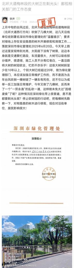 31. 帖文《北環(huán)大道梅林段的大樹(shù)正在剃光頭!鄙視相關(guān)部門的工作態(tài)度》