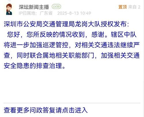 各職能單位如需對(duì)網(wǎng)友反映的問(wèn)題進(jìn)行回應(yīng),可在深圳論壇注冊(cè)官方賬號(hào)并通過(guò)認(rèn)證,回帖進(jìn)行回應(yīng)。